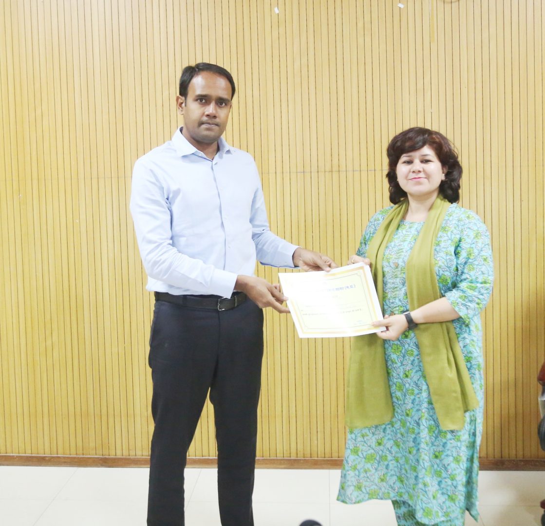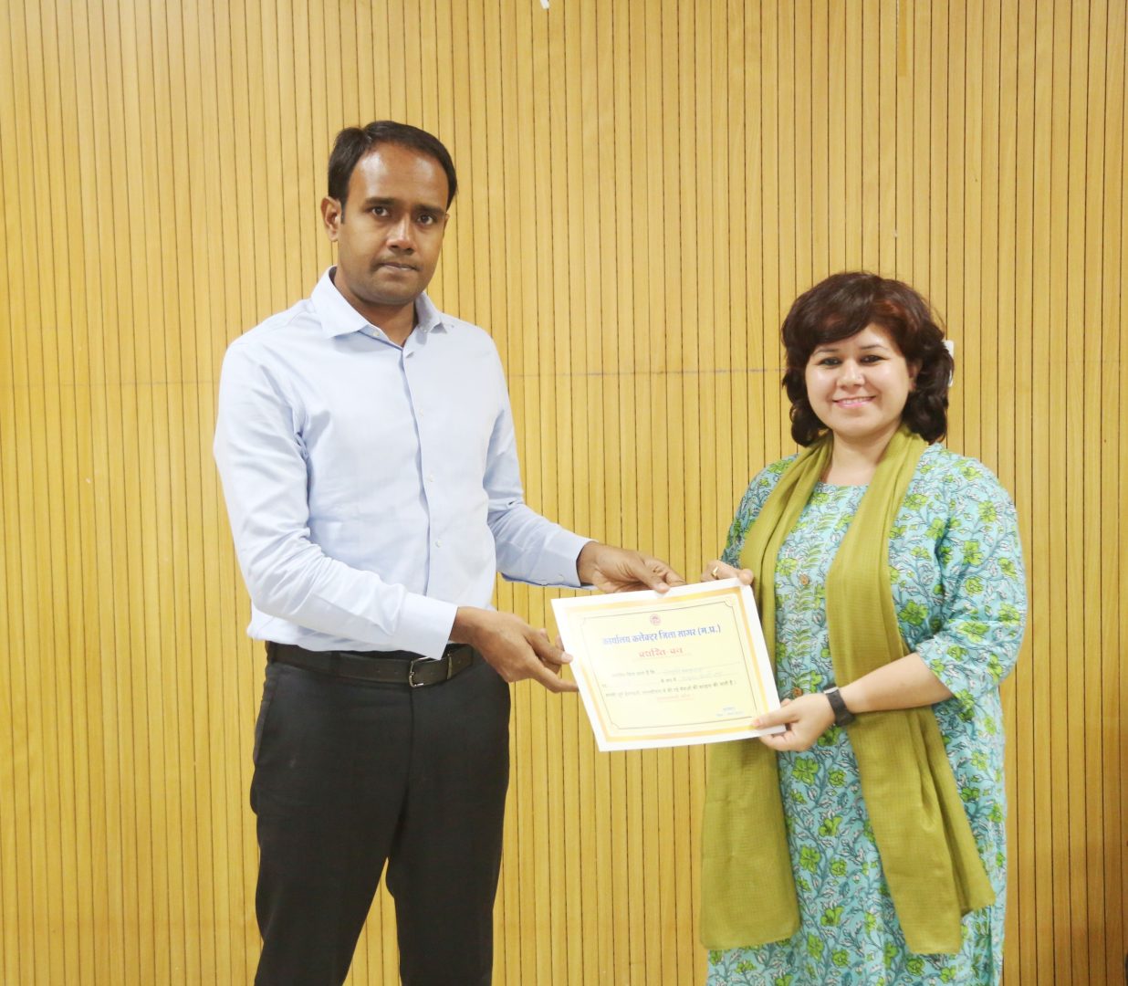 स्टेनो ग्रेड-2 मोहिनी उपाध्याय को यह पुरस्कार टीएल (टाइम लिमिटेड) और सीएम हेल्पलाइन की शिकायतों का समय पर एवं गुणवत्तापूर्ण निराकरण करने के लिए दिया गया है। साथ ही, उन्होंने अपने प्रशासनिक कार्यों में अनुशासन, जवाबदेही और पारदर्शिता का उत्कृष्ट उदाहरण प्रस्तुत किया है। उनकी इसी कार्यनिष्ठा को देखते हुए कलेक्टर श्री संदीप जी आर ने उन्हें प्रशस्ति पत्र प्रदान कर उनका मनोबल बढ़ाया।