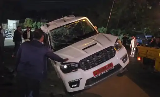 उन्होंने बताया कि कार की गति इतनी तेज थी कि टक्कर लगते ही उनकी स्कॉर्पियो अनियंत्रित होकर पलट गई। हादसे में वाहन चला रहा उनका ड्राइवर गंभीर रूप से घायल हो गया, जबकि उन्हें और उनकी पत्नी को भी चोटें आई हैं।