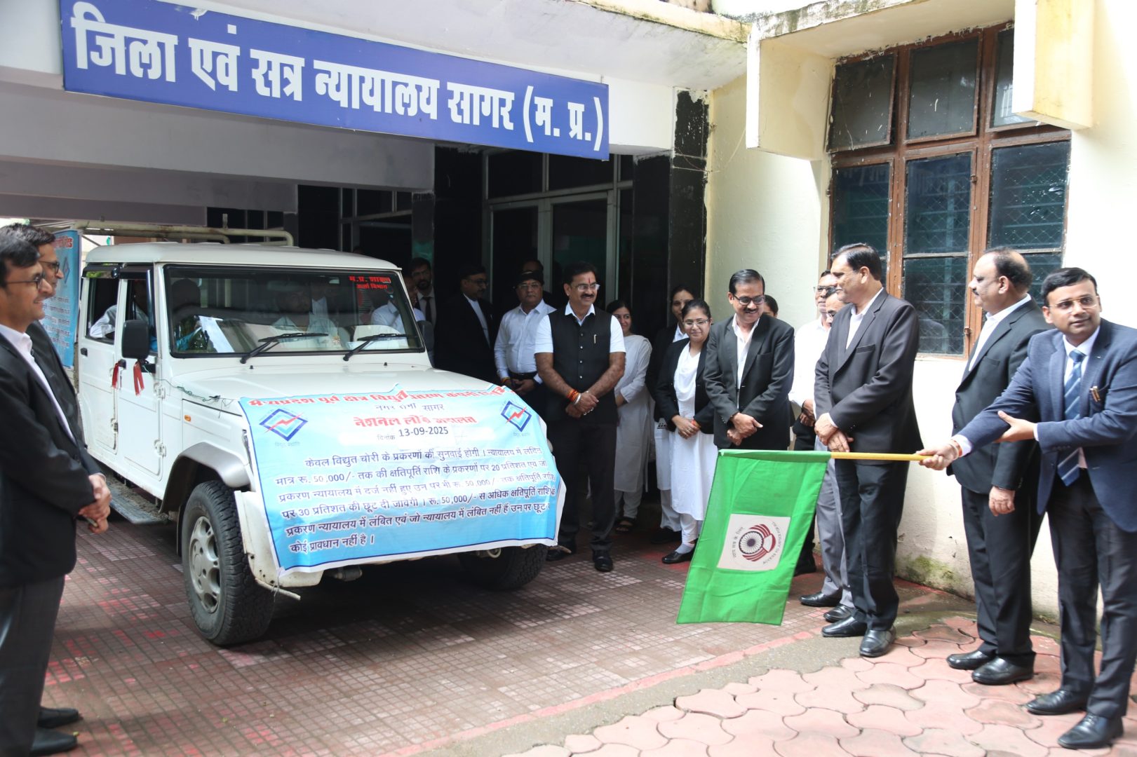 न्याय व्यवस्था को और अधिक जनसुलभ, त्वरित एवं सुलभ बनाने की दिशा में एक महत्वपूर्ण पहल करते हुए आज सागर जिला न्यायालय परिसर से नेशनल लोक अदालत के प्रचार-प्रसार रथ को हरी झंडी दिखाकर रवाना किया गया। इस अवसर पर माननीय प्रधान जिला न्यायाधीश एवं अध्यक्ष, जिला विधिक सेवा प्राधिकरण, सागर ने प्रातः 10:30 बजे विधिवत शुभारंभ कर रथ को जिले के विभिन्न क्षेत्रों की ओर प्रस्थान कराया।