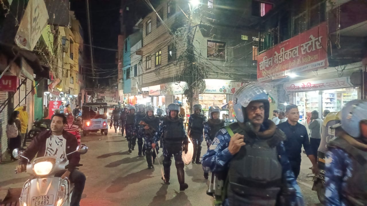 सागर में कानून-व्यवस्था मजबूत करने पुलिस–सीआरपीएफ का संयुक्त फ्लैग मार्च !