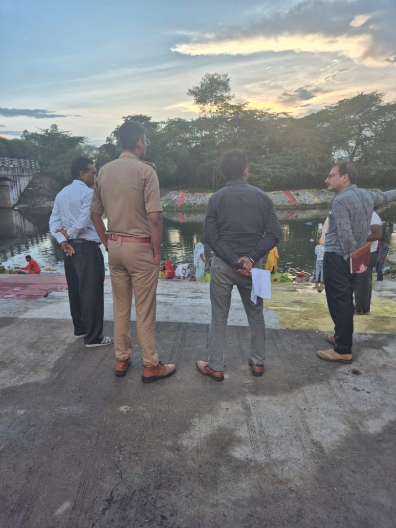 कलेक्टर श्री संदीप जी आर के निर्देशानुसार अधिकारियों ने शहर के दुर्गा प्रतिमा विसर्जन स्थलों पर तैयारियों का निरीक्षण किया। अनुविभागीय अधिकारी ने सुरक्षा व्यवस्था, ट्रैफिक नियंत्रण, बैरिकेडिंग, लाइटिंग, साफ-सफाई और जलभराव की स्थिति का जायजा लिया।