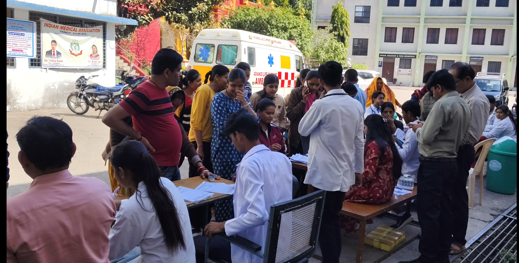 सागर। इंडियन मेडिकल एसोसिएशन (आईएमए) सागर द्वारा पत्रकारों और उनके परिजनों के स्वास्थ्य को ध्यान में रखते हुए रविवार को एक सराहनीय पहल की गई। शहर के पीजी गर्ल्स कॉलेज परिसर में निःशुल्क स्वास्थ्य शिविर का आयोजन किया गया, जिसमें बड़ी संख्या में पत्रकारों और उनके परिवारजनों ने पहुंचकर स्वास्थ्य परीक्षण कराया और आवश्यक चिकित्सकीय परामर्श प्राप्त किया।