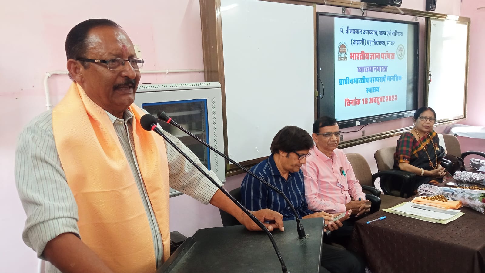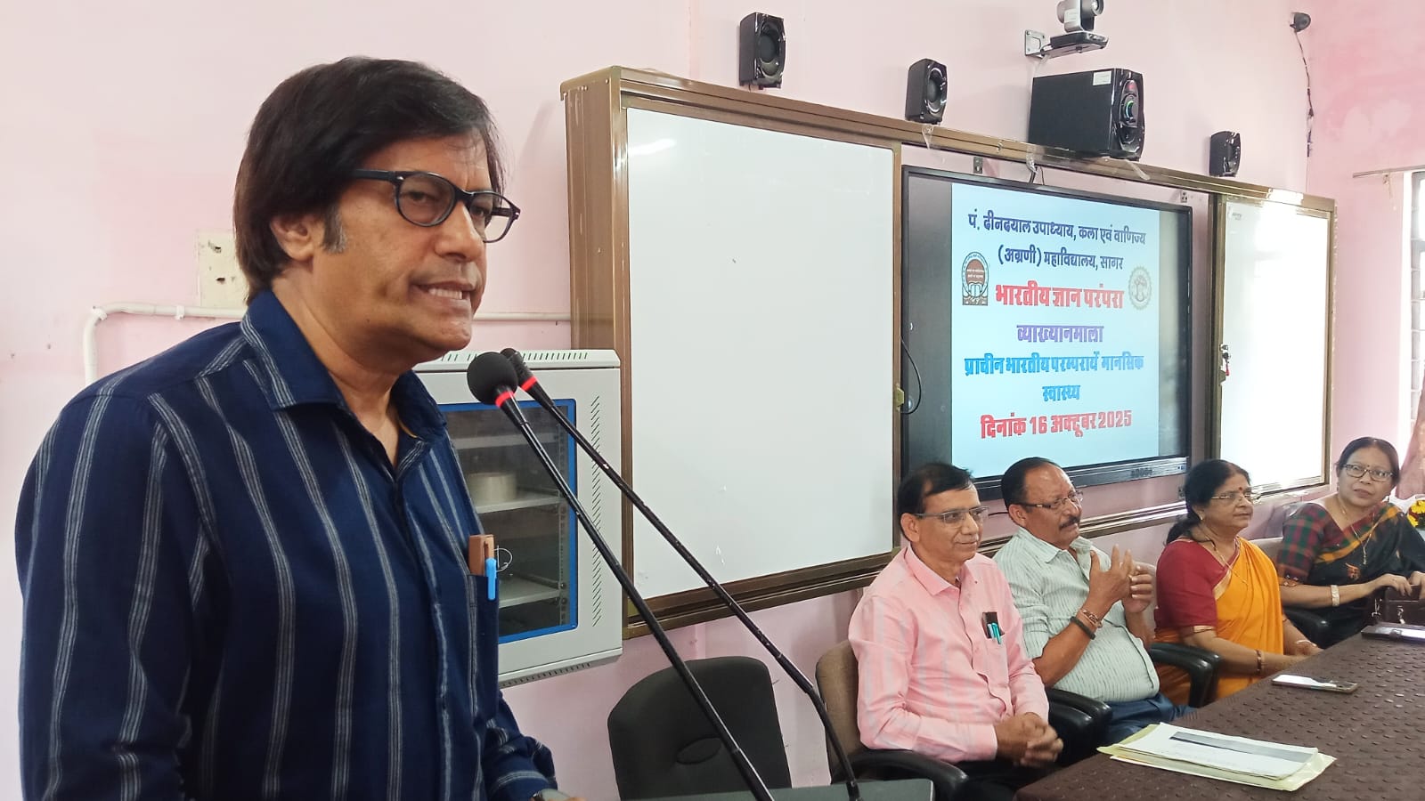सागर स्थित पं. दीनदयाल उपाध्याय, शासकीय कला एवं वाणिज्य महाविद्यालय में भारतीय ज्ञानपरंपरा के अंतर्गत मानसिक स्वास्थ्य विषयक व्याख्यानमाला का आयोजन किया गया। कार्यक्रम में मानसिक स्वास्थ्य, जीवनशैली और सामाजिक चेतना पर गहन विचार विमर्श हुआ।