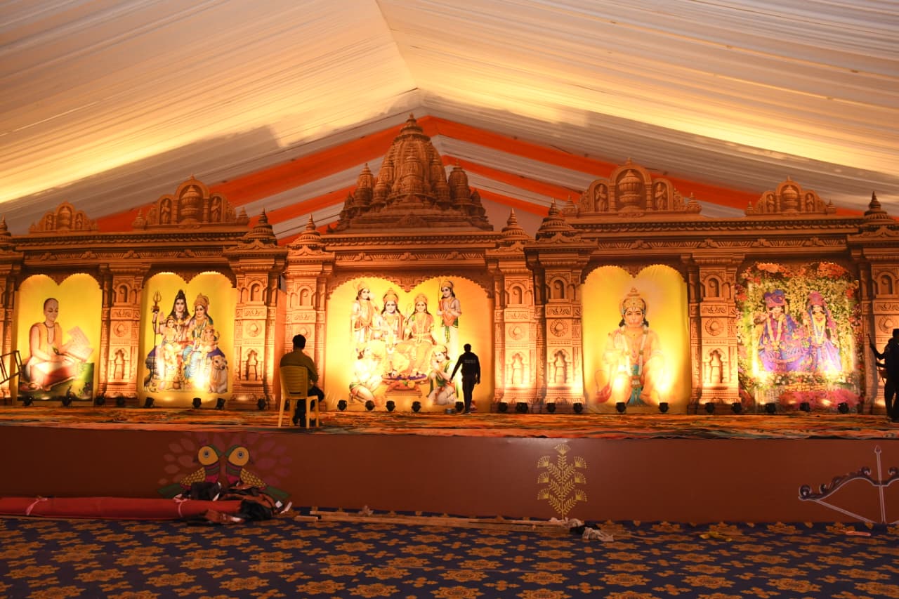 रुद्राक्ष धाम मंदिर परिसर और उसके सामने स्थित स्टेडियम में बने विशाल पंडाल को अत्यंत भव्य और आकर्षक रूप से सजाया गया है। आयोजन स्थल को इस प्रकार सजाया गया है कि श्रद्धालु अयोध्या की भव्यता का अनुभव कर सकें।