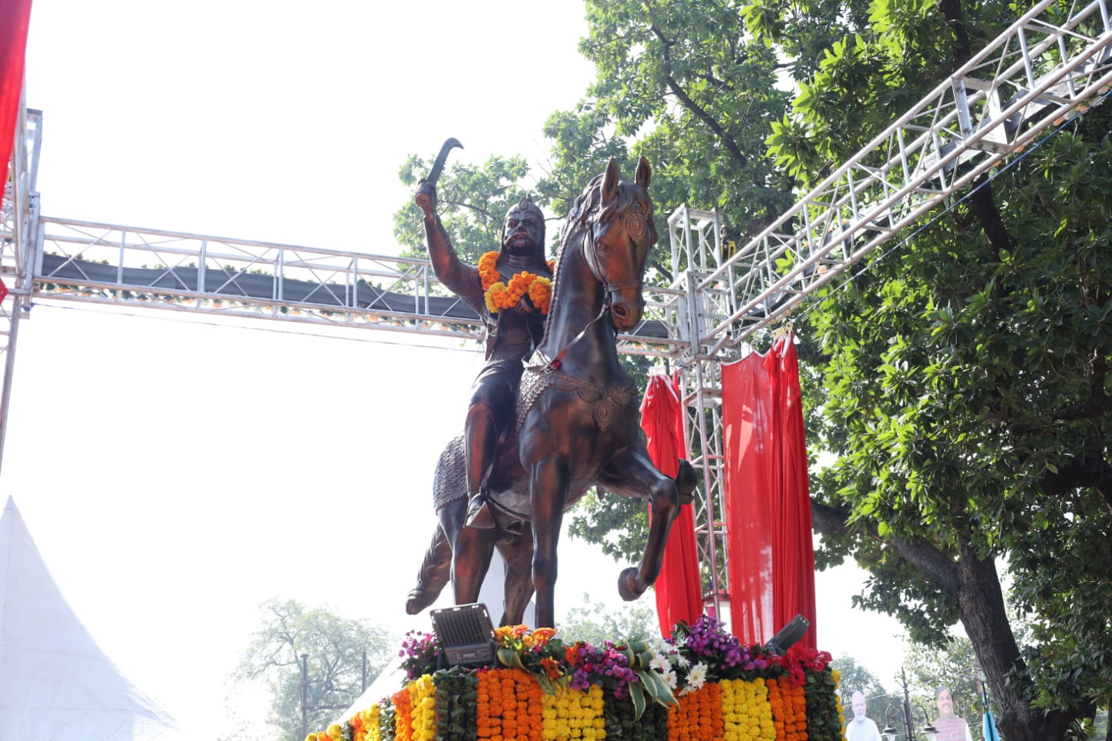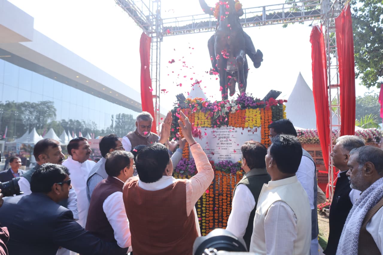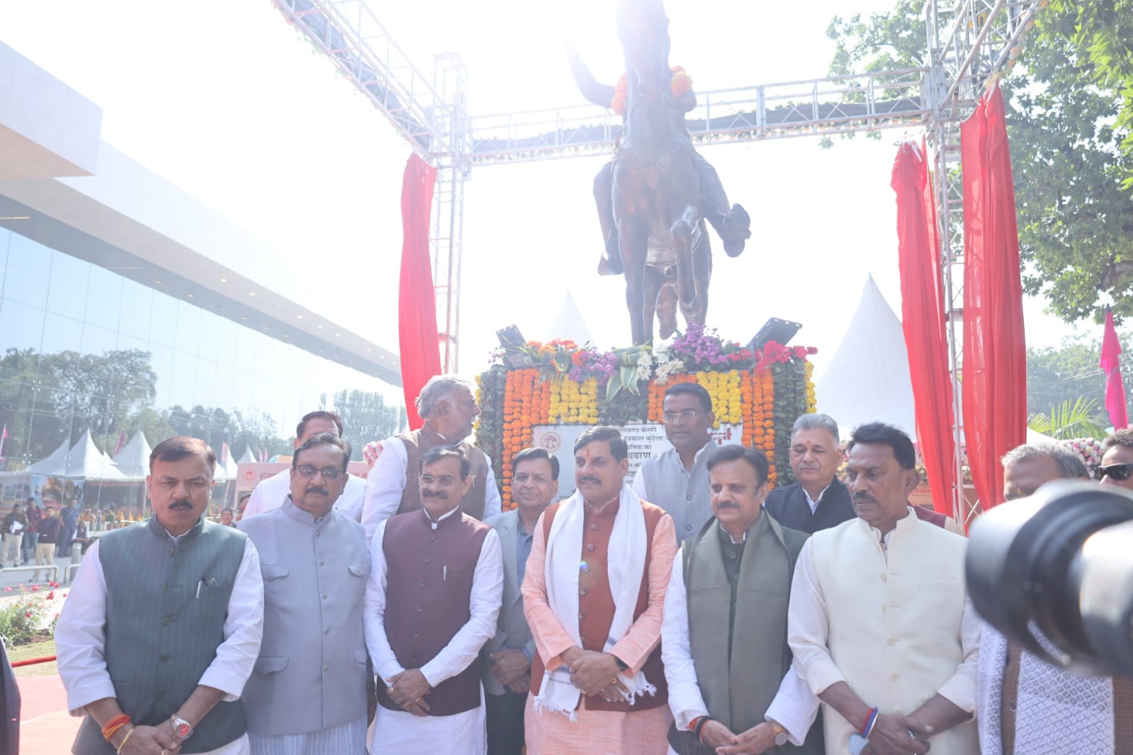 मध्यप्रदेश के मुख्यमंत्री डॉ. मोहन यादव ने मंगलवार को खजुराहो कन्वेंशन सेंटर के पास स्थित बुंदेलखंड केसरी महाराजा छत्रसाल बुंदेला की नवनिर्मित प्रतिमा का विधिवत अनावरण किया। इस अवसर पर केबिनेट के सभी मंत्रीगण, स्थानीय विधायक और अन्य जनप्रतिनिधि भी मौजूद थे।