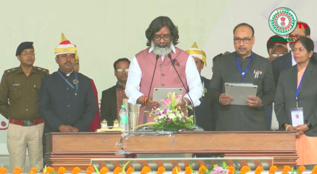 हेमंत सोरेन ने शपथ लेने से पहले संबोधन में कहा, “आज का दिन ऐतिहासिक है, क्योंकि यह केवल एक चुनावी जीत नहीं, बल्कि झारखंड के लोगों की मेहनत और उनके संघर्ष का प्रतीक है। हमारी एकता ही हमारा सबसे बड़ा हथियार है। हमें न विभाजित किया जा सकता है, न ही शांत किया जा सकता है। हम झारखंडी हैं और झारखंडी कभी नहीं झुकते।” हेमंत ने यह भी कहा कि उनका लक्ष्य राज्य को और अधिक प्रगति की दिशा में ले जाना है, और इसके लिए उनकी पार्टी और गठबंधन के सभी नेता मिलकर काम करेंगे।