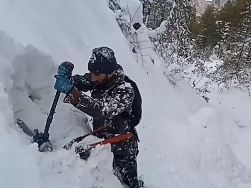 - करीब 4 फुट बर्फ के बीच 3 किलोमीटर पैदल पहाड़ी चढ़ाई करते हुए