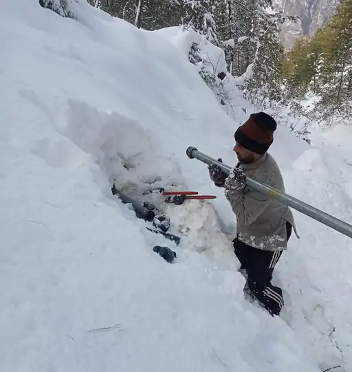 - बर्फ में दबी पाइपों को बाहर निकाला